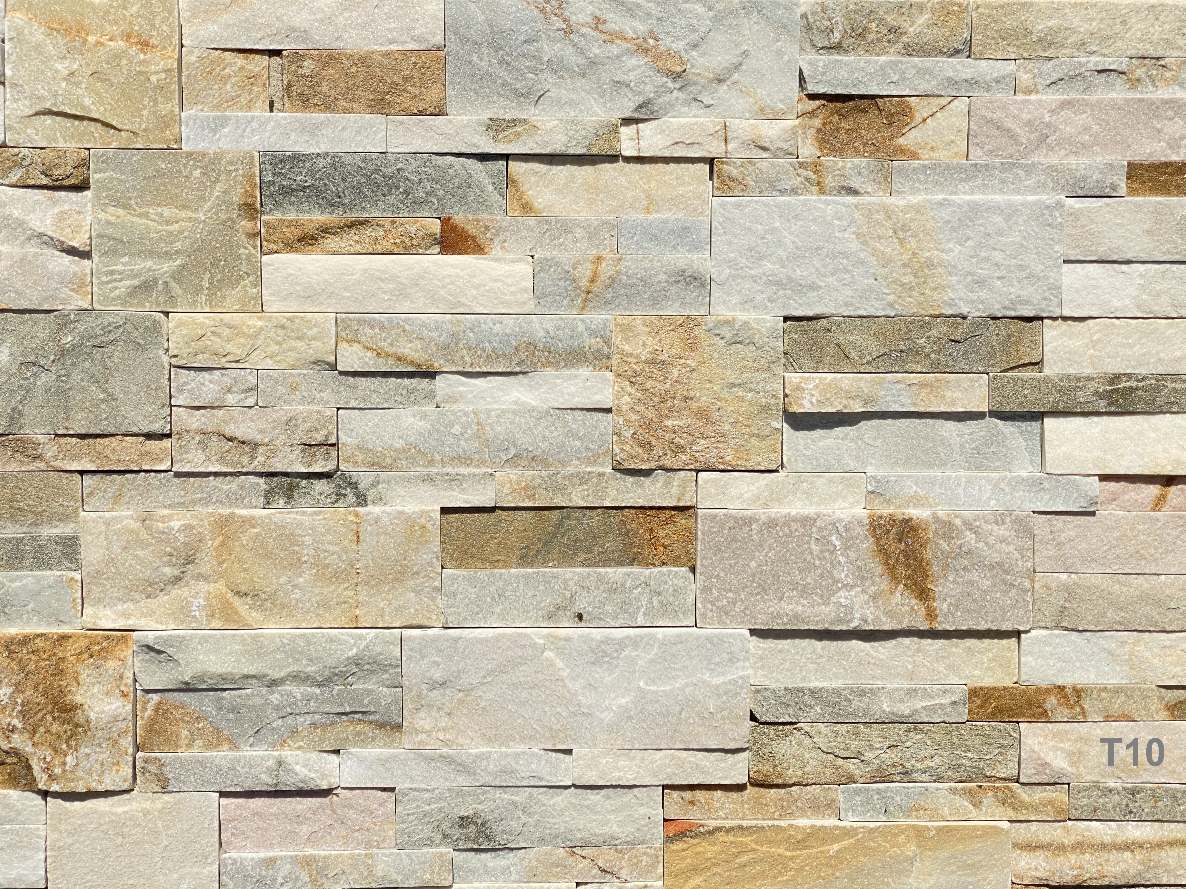 - Quarzite multicolor dalle tonalità chiare del giallo-marroncino con significative variazioni cromatiche tra i vari listelli !